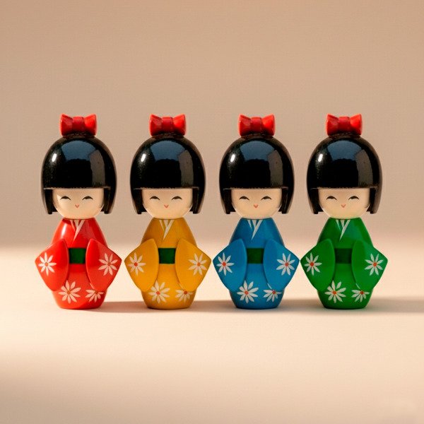Su diseño compacto y su expresión tranquila hacen que estas Kokeshis aporten belleza, calidez y una vibra positiva a cualquier ambiente.